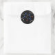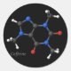 Black sticker with a colour coded 3D molecular model of caffeine.