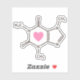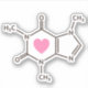 Sticker featuring a brown caffeine molecule molecular structure with a pink heart. Great sticker for coffee lovers.