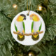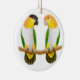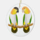 Original fine art design of two Caique parrots by artist Carolyn McFann of Two Purring Cats Studio on a quality holiday ornament for parrot fans.