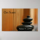 A stack of wet meditation stones, also known as a cairn, sit in balance before a wooden wall. This image incorporates three of the known elements of the Universe (wood, stone, water) and is perfect for your wellness clinic or studio. Personalise with your name, feel free to change all text.