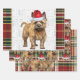 An adorable Cairn Terrier dog is ready for the holiday season with a Santa hat. This cute Christmas dog is paired with a red and green holiday plaid on this set of gift wrap for the dog lover.