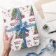 The repeated pattern on this Christmas wrapping paper includes an image of an adorable little Cairn Terrier dog sitting in a wicker basket. The basket is decorated with a red bow, and sits beside a Holiday tree. Stylised red and green text says MERRY CHRISTMAS", and your own signature is in two fields for you to customise. Other images included in the pattern include red decorative snowflakes, candy canes, and a peppermint lolly pop. Festive!