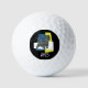 Cairn Terrier dog silhouette grid abstract pattern yellow and blue with tricolour background in a black circle. Personalize with your three initials in white under the dog shape. Perfect for the dog lover in your life or the dad who loves golfing, these golf balls are the perfect way to show off your passion.