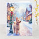 Bring holiday joy to the season with this delightful Christmas card featuring a Cairn Terrier on a snowy village street. A glowing lamppost, holly accents, and soft snowfall create a warm and festive atmosphere in watercolor style. The blank interior leaves plenty of space for your personal holiday wishes, perfect for dog lovers and seasonal correspondence.