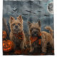 Unleash the spooky spirit with this eerie Halloween design featuring a pack of dogs under a dark, moonlit sky, surrounded by flying bats and glowing pumpkins. Perfect for those who love a touch of frightful fun with their furry friends!