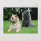 Aww...who can resist the cute face of a Cairn Terrier puppy dog? This charming postcard features two Cairn Terrier dogs relaxing in the green grass. These sweet Cairn pups are ready to help you send greetings to family and friends.