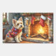 A heartwarming Christmas artwork featuring an adorable Cairn Terrier sitting beside a glowing fireplace adorned with stockings and twinkling Christmas lights. This cozy holiday scene beautifully captures the Cairn Terrier’s lively personality and loyal spirit, making it perfect for dog lovers and festive home decor. Add a touch of warmth, joy, and charm to your holiday celebrations with this delightful pet-inspired artwork.