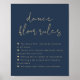 CAITLIN Modern Navy Blue Dance Floor Rules Sign