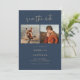 This photo wedding save the date card features an edgy handwritten font and a modern minimalist design in a contemporary navy blue and gold colour combination with three photo slots- two on the front and one on the back. Edit *most* wording and all colours to match your theme. This save the date is the perfect addition to your minimalist, modern, or contemporary wedding invitation.