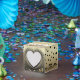 estilo corazón con toque excepcional un fondo dorado y rosas en la parte lateral de la caja y mariposas doradas alrededor de texto en la tapa de la caja y lunares en los dos laterales con rosas con un poco de sombra en la parte inferior con toque de brillo en la corazón.