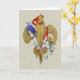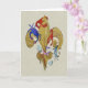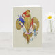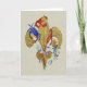 Cajun fleur de lis greeting card from original artwork. Fun and whimsical art of crabs, shrimp, crawfish and oysters all hanging on a gold fleur de lis.