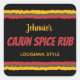 Cajun spice rub seasoning mix or blend gift jar label. Customise a label for your special blend for a wedding favour or holiday gift. Red, green, and black Louisiana colours.