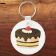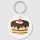 A cake with a strawberry on top. This design looks really effective on these Keychain