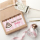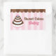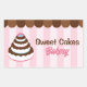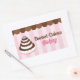 A cute sticker for a cake bakery in pink and chocolate brown. It is bordered with a brown awning and pink stripes background, with a four tiered cake. Edit it to add your own bakery business or personalised name. A sticker great for women-owned bakeries that create custom cakes for weddings, birthdays and other special events, for placing on boxes, packaging, dessert labels and baked goods packaging.