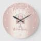 Cake Bakery Pastry Chef Rose Gold Glitter Drips Large Clock