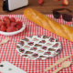 Quirky cake pattern with delicious looking chocolate sponge, cheesecake and gateaux.