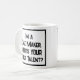Funny slogan on a mug that says "I'm a Cake Maker. what's YOUR super talent?". Mug for a Cake Maker. Black and white bold text.