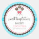 © 2021 Socialite Designs. This elegant cake pops bakery box seals / stickers have a group of cake pops design inside a lace / scallop circle. The design also has a vibrant turquoise background and ribbon with polka-dots. A wonderful design to use as seals on bakery packages.