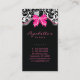 Cake pops business card with pretty floral damask background and cute bows.