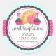 © 2020 Socialite Designs Inc. This elegant cake pops, cookie and turnover bakery box seals / stickers have an elegant pastry design inside a lace / scallop circle. The design also has a vibrant fuchsia pink ribbon with polka-dots. A wonderful design to use as seals on bakery boxes.