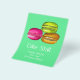 A flyer suitable for a cake stall or bake sale market stall in a local community or school. Featuring a cute and colourful illustration of a fancy French macaron or macaroons. Fully customisable text. Background colour is customisable.