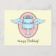 This cake is about to fly away to take your wishes to the skies, where they can come true. In the centre of a pink, scalloped edge frame is the design of a two tiered cake, with blue frosting, white Swiss dots, and three roses on top, sitting on a cake pedestal. Kawaii, chibi like wings are placed on both sides of the cake. Great for birthday's but could be used for other special occasions.