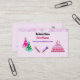 A delightful business card to showcase your birthday party company. Fancy cake with star candles and colourful designs. Two magic wands in pink and purple. and colourful party hats. Customise with all of your own information as desired.
