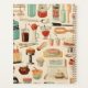 Cute cakes, glass bowls and kitchen tools. Main colours baby blue, red and pastel.