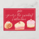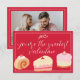 Cute Valentine's Day greeting card with photo, cakes illustration, bow and modern hand written script lettering "You're the sweetest valentine". Red, pink and light yellow colors. You can customize card with your photo.