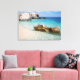 Canvas landscape print of big rocks in the water and in the sand of Cala Mariolu Beach in the Gulf of Orosei at the Emerald Coast of the island Sardinia in the Mediterranean Sea, Italy. Great decoration on your wall!