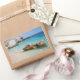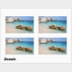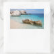 Rectangular photo sticker with big rocks in the water and in the sand of Cala Mariolu Beach in the Gulf of Orosei at the Emerald Coast of the island Sardinia in the Mediterranean Sea, Italy.