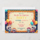 Say ¡hola! to *Calavera Carnival*, the Día de los Muertos party invite that’s got more flair than a skeleton in a mariachi showdown. With sugar skulls, marigold garlands, and balloon chaos, this card is a full-blown fiesta in paper form. The front spills all the party details—date, time, location, and costume rules—while the back is yours to customise with RSVP info, cheeky notes, or a warning about candy-loving ancestors. It’s the perfect way to summon your crew for a night of music, memory, and mischievous celebration. BYOD: Bring Your Own Dance moves (and maybe a cupcake).
