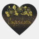 pegatina en forma de corazón para ocasiones y celebraciones hecha con textura negra y flores dorados con purpurina Puedes usarla para un envío especial.
