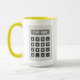 Calculator coffee mug for bookkeeper or accountant. Funny Birthday gift idea for coworker, boss, wife, husband, employee, best friend, world's greatest math tutor, school teacher, student, clerk, teller, kids etc. Custom colour cup with handle. Printed on two sides.