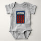 Baby suit features an original illustration of a blue and red calculator. Great as a baby gift for a teacher or accountant.