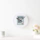 The clock did not take as long to arrive as I thought it might and was extremely well packaged. I didn't do the measurements so I didn't realize it is a little smaller than the average clock but that does not matter (just make sure you check if that's important to you).It is really nifty! It seems very solid and well made not flimsy at all. It has been going well and has kept good time in its few weeks on my wall. Nice product. Gets noticed too! Nicer in real life than the picture but true to the picture