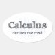 Math humour stickers - Calculus Derives Me Mad. There's no escaping calculus whether you're a mathematician, scientist or engineer. We offer a fun quote to soothe your aching brain!