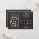 This pretty save the date card features a flower-filled mason jar beside a calendar and pretty gold love heart highlighting your special date on a chalkboard background.