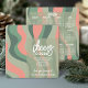 Cheers to the New Year - This unusual design can be used for a holiday business greeting card. Add your logo and branding to this organic curve design. The business name and detailed message can be changed. The background is a wavy pattern in shades of olive and orange.