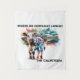 "Calfeteria" Tapestry. This adorable product features an image of a precious calf with the hilarious joke "Where do cows eat lunch? The Calfeteria" on it. Perfect for anyone who loves cows or enjoys a good pun, this product is sure to bring a smile to their face.