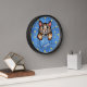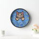 This fun novelty clock includes a faux (printed) denim / blue jean look and includes a cartoon calico kitty cat that appears as if it's sitting inside a pocket! The design also includes "patches" (printed) that resemble the silhouettes of paw prints. Time is kept with printed "buttons." Use the easy template to add your name or your cat's name to the design (or simply delete the sample name "Tabitha" to order without a name). These cute clocks make the perfect gift for any cat owner! They would also be fun for an animal groomer or vet.