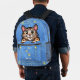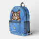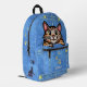 This fun novelty backpack includes a faux (printed) denim / blue jean look with a cartoon calico kitty cat that appears as if it's sitting inside the front pocket! The design also includes silhouettes of paw prints and a cat / bird silhouette on one side. Use the easy template to add your name or your cat's name to the design (or simply delete the sample name "Tabitha" to order without a name). These cute backpacks make the perfect gift for any cat owner! They would also be fun for an animal groomer or vet. Find more cat colours and also find this design on other products in the store here: https://www.zazzle.com/store/laborandleisure