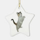 A calico cat sits up to beg for his supper on this beautiful Christmas ornament