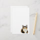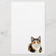 Original fine art design of a calico kitty with her feet tucked under by illustrator Carolyn McFann of Two Purring Cats Studio on customisable stationery for cat lovers.