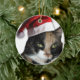 Calico Cat with a Santa Claus Hat Ceramic Tree Decoration
