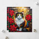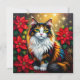 Calico Cat with Poinsettias Custom Christmas Holiday Card