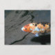 Calico Fish (Goldfish) is seen swimming above its shadow on this postcard. These fish can grow up to 12 inches and their orange and black scale colours produce a pearly appearance.