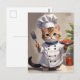 Calico Kitten Chef with Fork Cute Baking Cat Postcard
