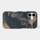 Those eyes, that serious look, the closeup of the beautiful Calico kitten in the original photograph by ZoeSPEAK on this iPhone 17 Case, shows the kitten’s face close up as she stares intently at something. Her fur is black with orange patches, one from her forehead down to the tip of her nose with its long whiskers. Her blue eyes have a golden yellow band around them. A photo with a graphic look in neutral tones, this is a cat lover’s kitten closeup.