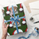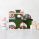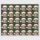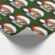 Calico, or tortoiseshell with white, kitty cat in a Santa Claus hat with just the tip of her tongue showing in a delicate and feminine humbug cat lovers Christmas holiday wrapping paper